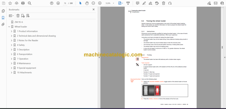 Hitachi ZW95-6 Wheel Loader Operator’s Manual (ENMPS0-1-1)