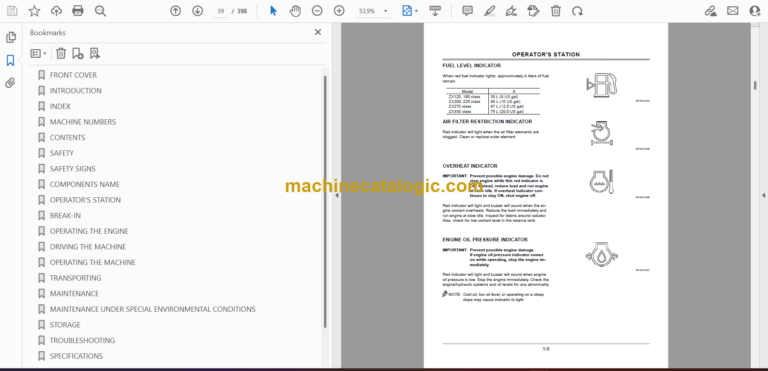 Hitachi ZX110 to ZX330 Excavator Operator’s Manual (EM1G6-4-1)