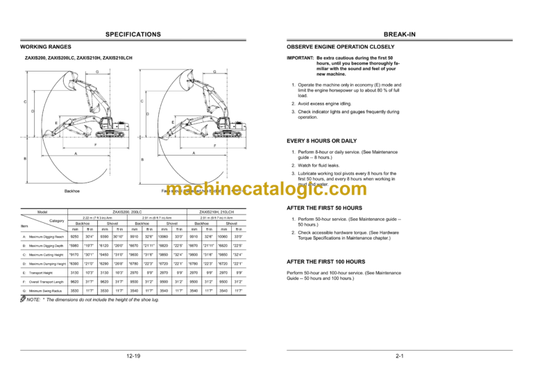 Hitachi ZX110 to ZX330 Excavator Operator’s Manual (EM1G6-4-1)