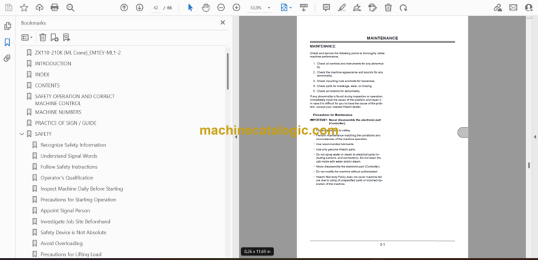 Hitachi ZX110,ZX110-E,ZX120,ZX120-E,ZX130K,ZX160LC,ZX200,ZX200-E,ZX210K ML Crane Operator’s Manual (EM1EY-ML1-2)