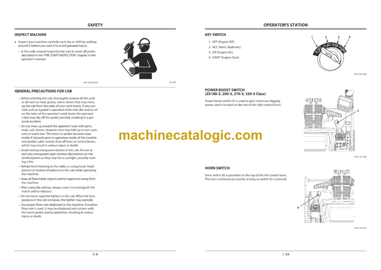 Hitachi ZX120-3class, ZX180-3class, ZX200-3class, ZX270-3class, ZX330-3class Hydraulic Excavator Operator’s Manual (EM1U1-3-2, EM1U1-EN3-1, EM1U1-EN3-2, EM1U1-EN3-5)
