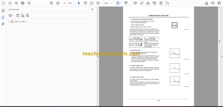 Hitachi ZX120-3class,ZX200-3class,ZX240-3class,ZX330-3class,ZX450-3class Magnet Specifications Machine Operator’s Manual (EM1J1-LM2-1)