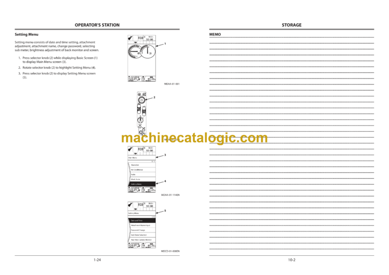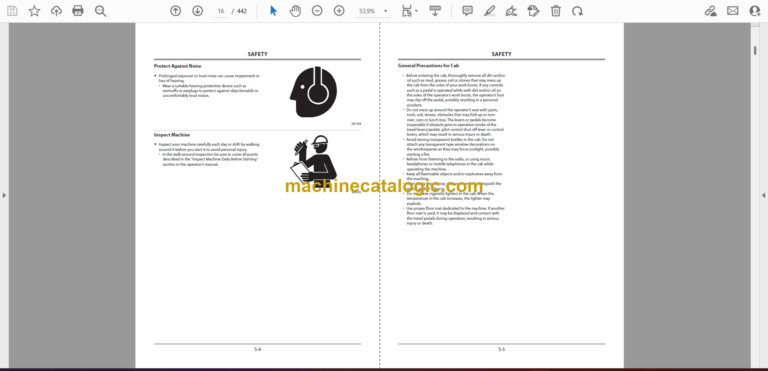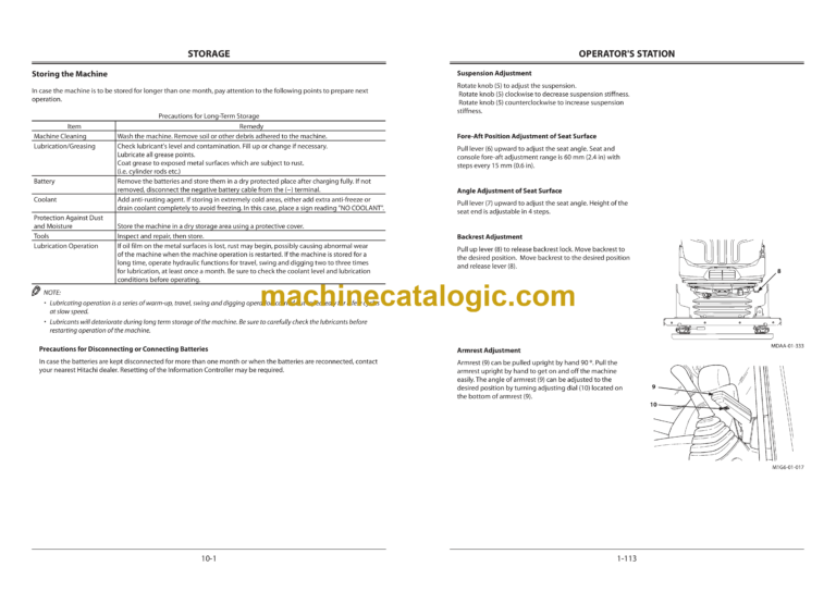 Hitachi ZX120-5G class, ZX180-5G class, ZX200-5G class, ZX280-5G class, ZX330-5G class Hydraulic Excavator Operator’s Manual (ENMDCD-3-1 to ENMDCD-3-8)