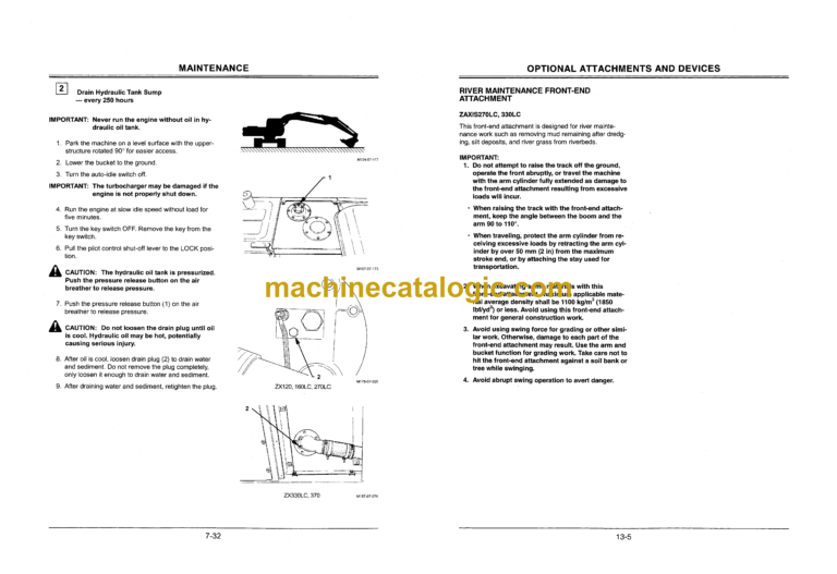 Hitachi ZX120,ZX160LC,ZX270LC,ZX330LC,ZX370 Excavator Operator’s Manual (EM1F1-NA4-1, EM1F1-NA4-2, EM1F1-NA5-1)