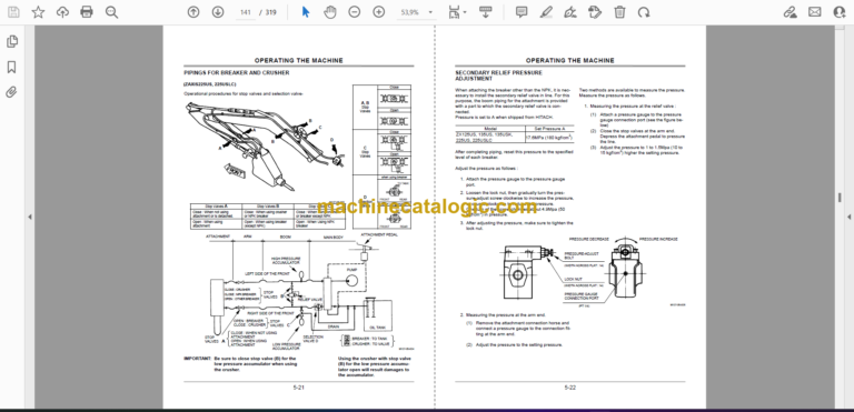 Hitachi ZX125US,ZX135US,ZX225US,ZX225USLC Excavator Operator’s Manual (EM1SE-2-1, EM1SE-EN4-1, EM1SE-4-2)