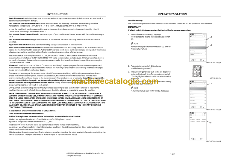 Hitachi ZX130-7H, ZX160LC-7H , ZX190LC-7H, ZX210LC-7H, ZX250LC-7H, ZX300LC-7H, ZX350LC-7H Hydraulic Excavator Operator’s Manual (ENMDHD-NA1-1, ENMDHD-NA1-2)