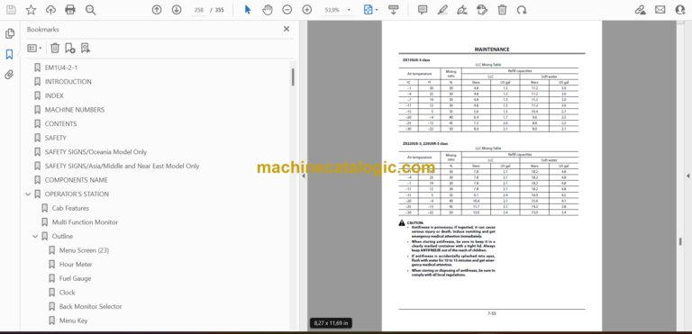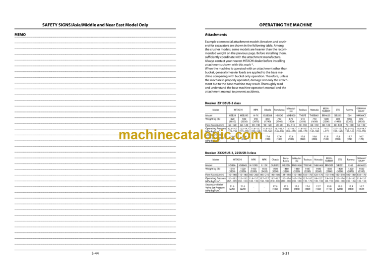 Hitachi ZX135US-3class,ZX225US-3class,ZX225USR-3class Hydraulic Excavator Operator’s Manual (EM1U4-2-1, EM1U4-2-2, EM1U4-2-5, EM1U4-2-6)