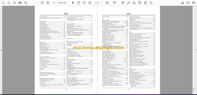 Hitachi ZX135US-5A,ZX225US-5A,ZX225USLC-5A Hydraulic Excavator Index: