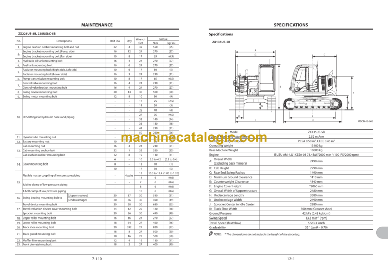 Hitachi ZX135US-5B,ZX225US-5B,ZX225USLC-5B Hydraulic Excavator Index: