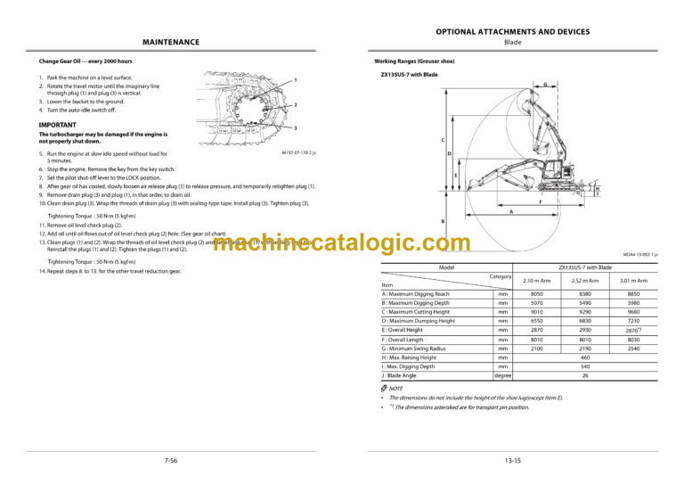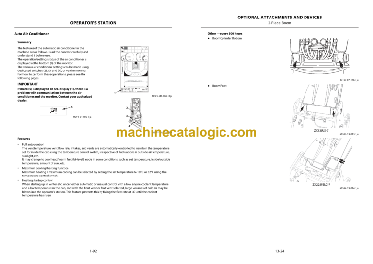 Hitachi ZX135US-7, ZX225USLC-7, ZX225USRLC-7 Hydraulic Excavator Operator’s Manual (ENMDA4-EN1-2, ENMDA4-EN1-3, ENMDA4-EN1-4)
