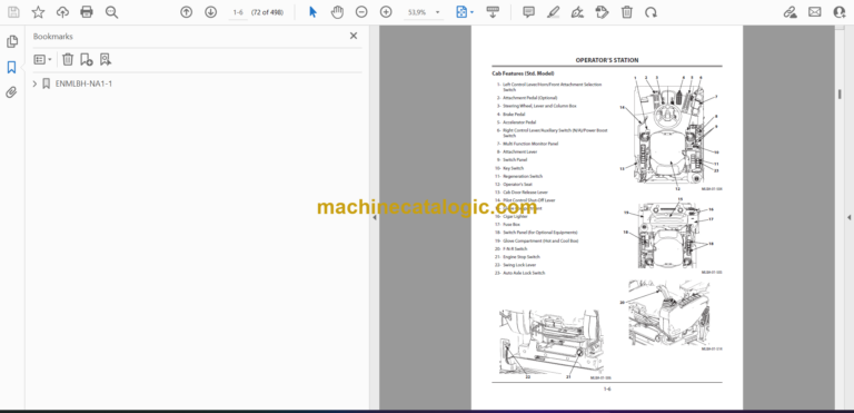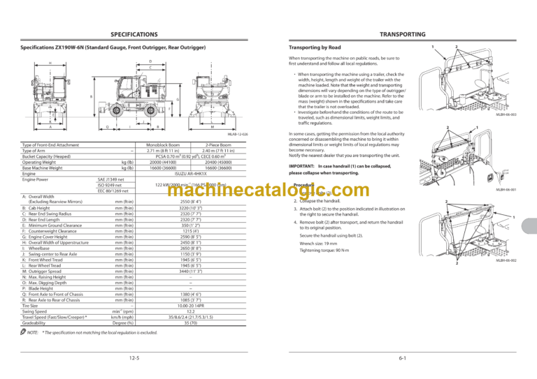 Hitachi ZX190W-6N Wheeled Excavator Operator’s Manual (ENMLBH-NA1-1, ENMLBH-NA1-2, ENMLBH-NA1-3)