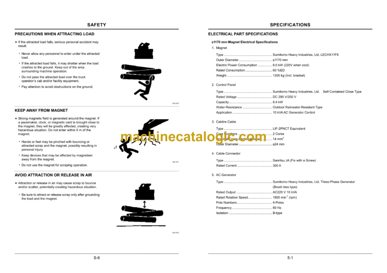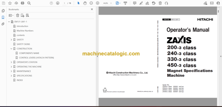 Hitachi ZX200-3class,ZX240-3class,ZX330-3class,ZX450-3class Magnet Specifications Machine Operator’s Manual (EM1J1-LM1-1)