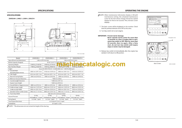 Specifications (ZAXIS240-3, 240LC-3, 250H-3,