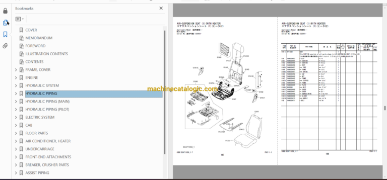 Hitachi ZX240-5A,ZX240LC-5A,ZX250H-5A,ZX250K-5A,ZX260LCH-5A Hydraulic Excavator Full Parts Catalog