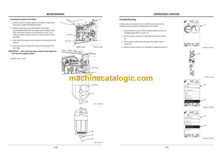 Hitachi ZX280-5 class, ZX330-5 class Hydraulic Excavator Operator’s Manual (ENMDCA-EN1-1, ENMDCA-EN1-1A)