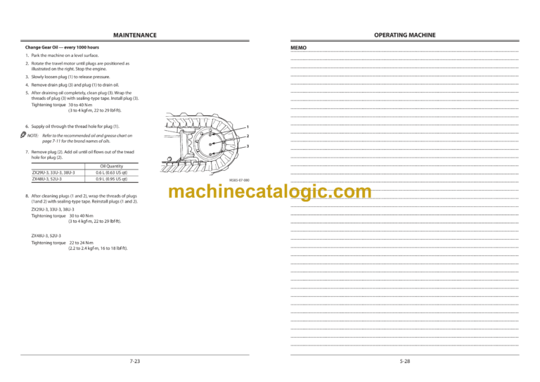 Hitachi ZX29U-3, ZX33U-3, ZX38-3, ZX48U-3, ZX52U-3 Hydraulic Excavator Operator’s Manual (EM1NE-EN1-2, EM1NE-EN1-2T)