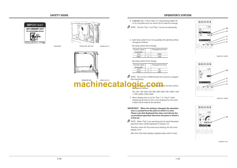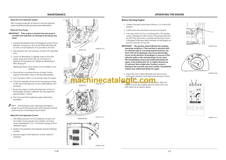 Hitachi ZX35U-5N,ZX50U-5N,ZX60USB-5N Hydraulic Excavator Operator’s Manual (ENMADG-NA1-1, ENMADG-NA1-2, ENMADG-NA1-3, ENMADG-NA1-5)