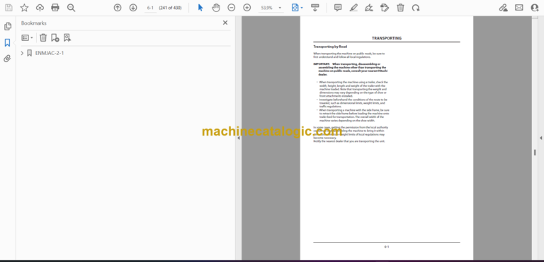 Hitachi ZX470-5G class, ZX670-5G class, ZX870-5G class Hydraulic Excavator Operator’s Manual (ENMJAC-2-1)