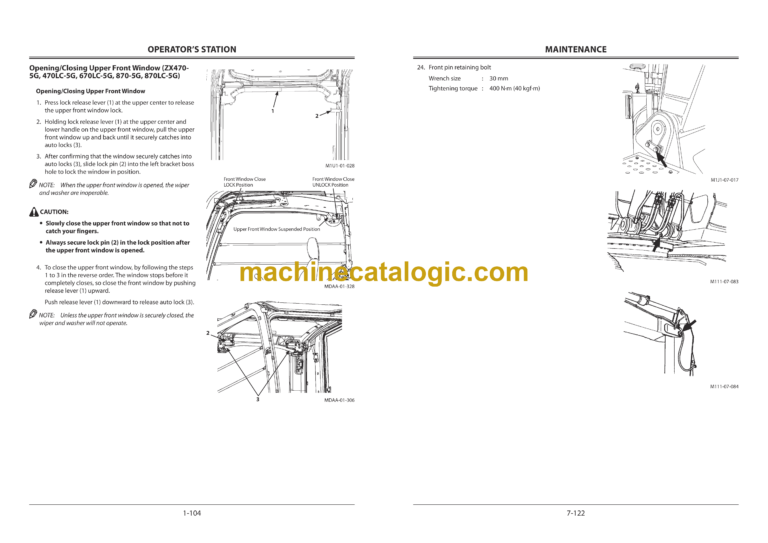 Hitachi ZX470-5G class, ZX670-5G class, ZX870-5G class Hydraulic Excavator Operator’s Manual (ENMJAC-2-1)