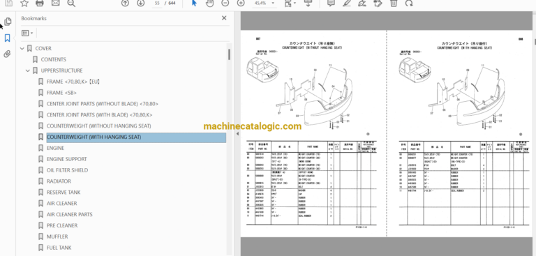 Hitachi ZX70, ZX70LC, ZX80, ZX80LCK, ZX80SB, ZX80SBLC Excavator Full Parts Catalog
