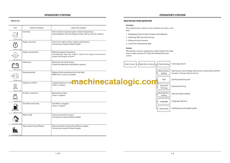 Hitachi ZX70LC-3,ZX70LCN-3,ZX85US-3,ZX85USBLC-3 Hydraulic Excavator Operator’s Manual (EM1P1-EN1-1, EM1P1-EN1-2, EM1P1-EN1-3)