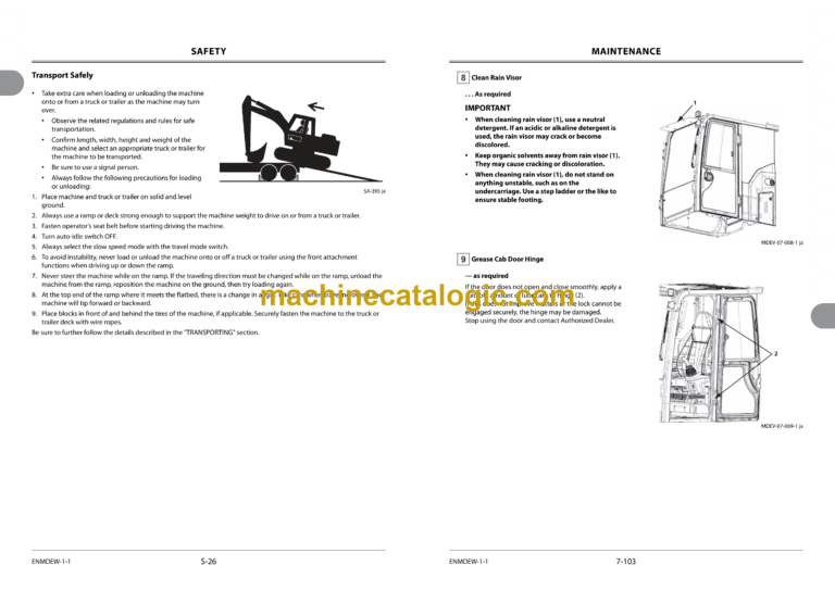 Hitachi ZX75US-7,ZX85USB-7 Hydraulic Excavator Operator’s Manual (ENMDEW-1-1, ENMDEW-1-2, ENMDEW-1-3)