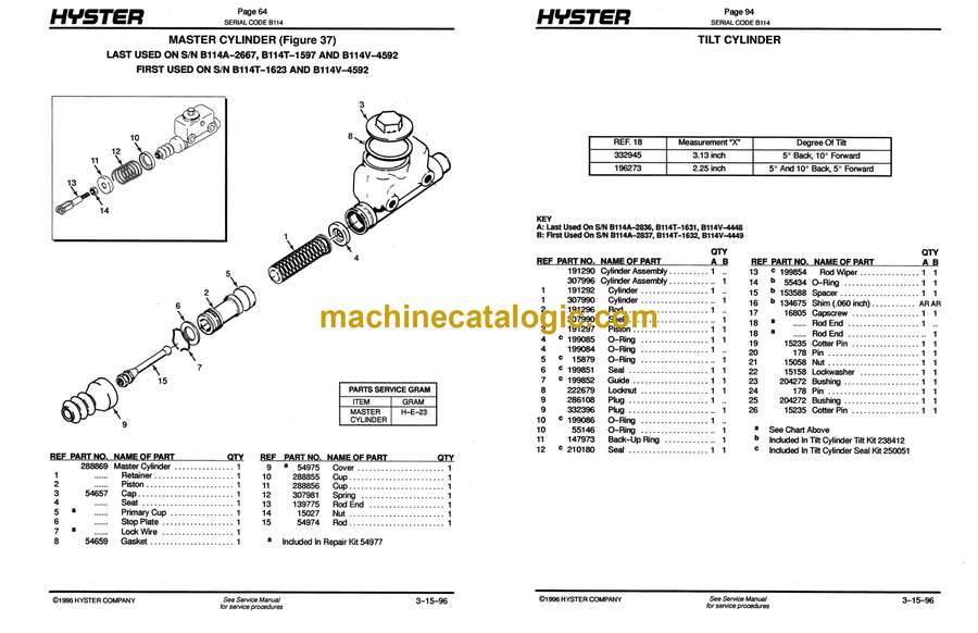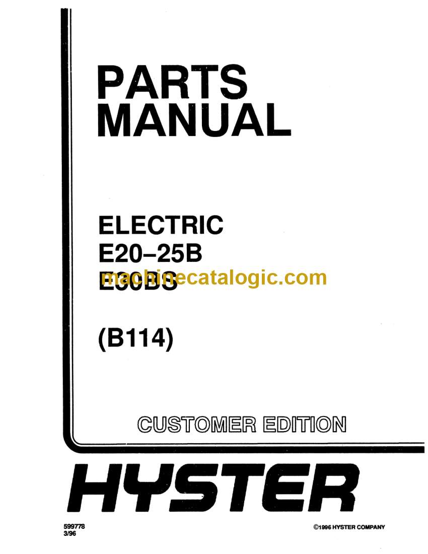 Hyster E20, E25B, E30BS (B114) Forklift Parts Manual