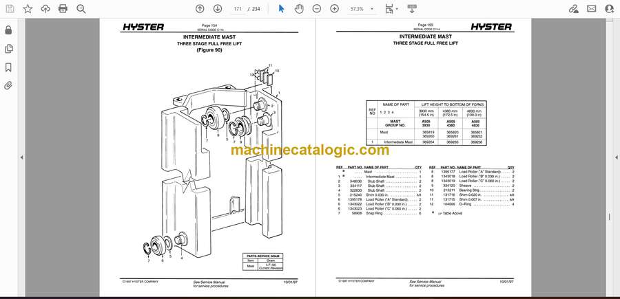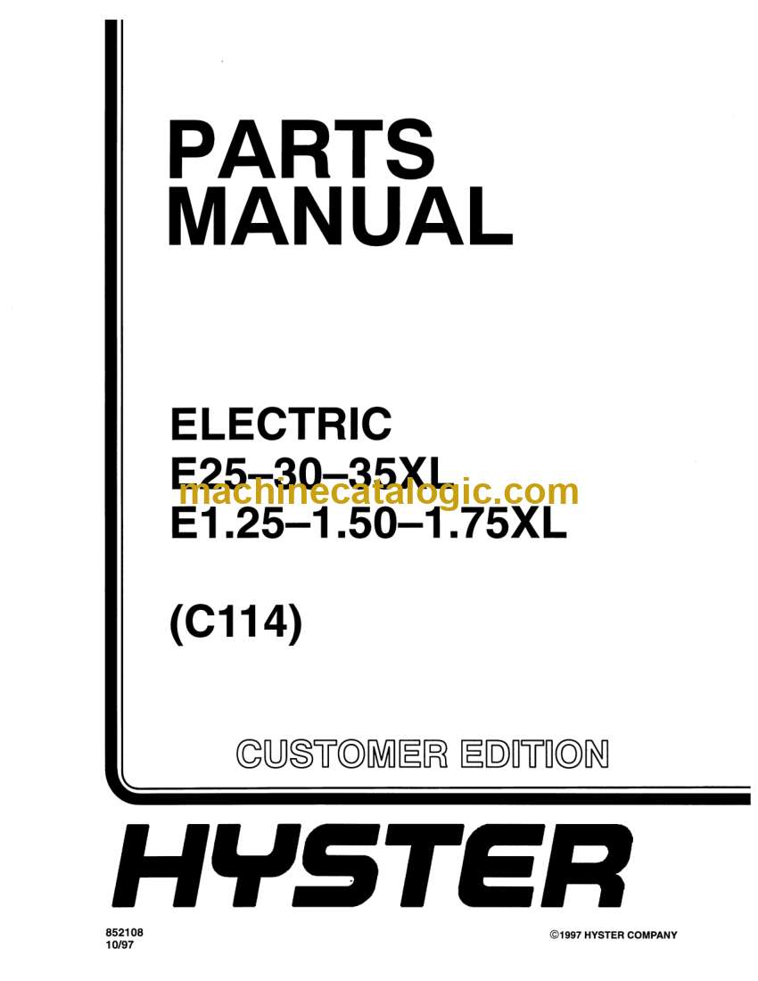 Hyster E25, E30, E35XL, E1.25, E1.50, E1.75XL (C114) Forklift Parts Manual