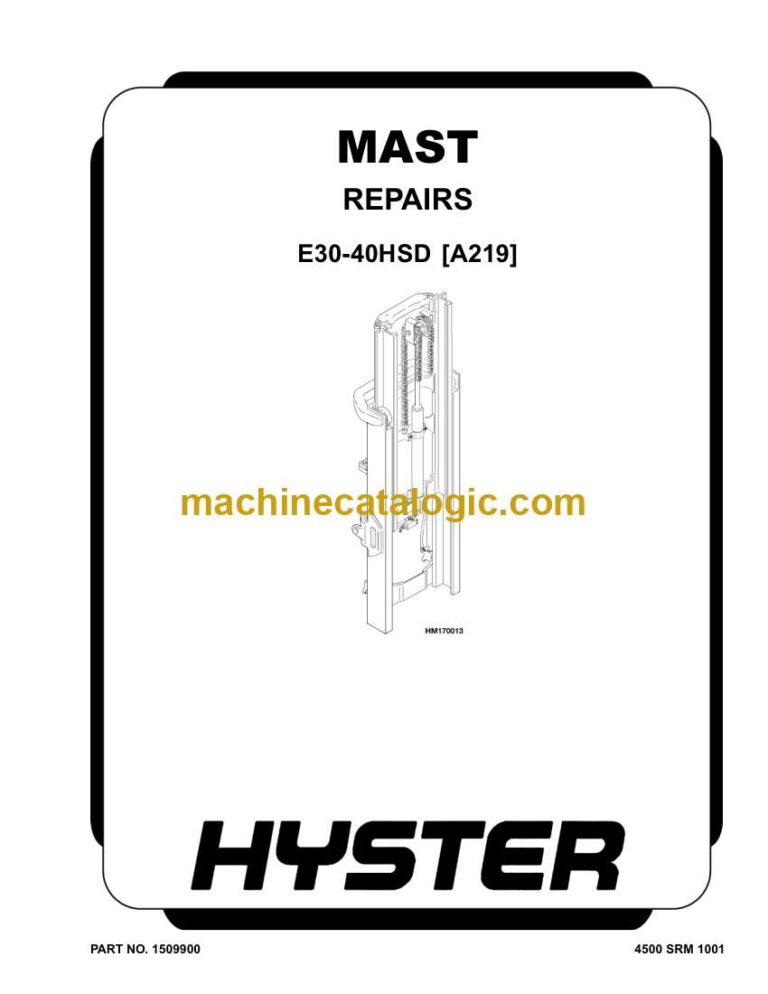 Format: PDF (Printable Document) File Language: English File Pages (Total): 988 File Size (Total): 23.56 MB (Speed Download Link) Brand: Hyster Model: E30-40HSD (A219 A883) Forklift Type of Document: Service Manual