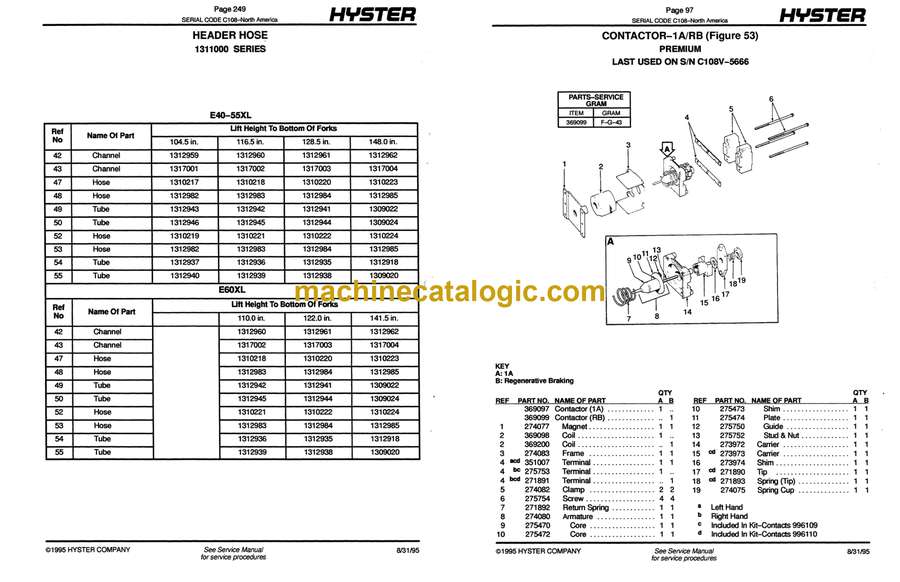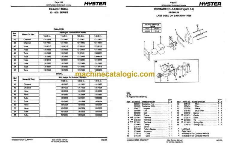 Hyster E40XL, E50XL, E55XL, E60XL (C108) Forklift Parts Manual
