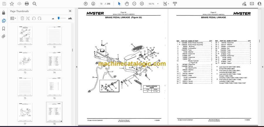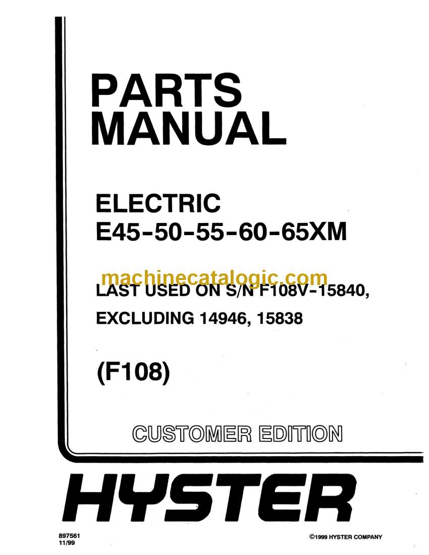 Hyster E45, E50, E55, E60, E65XM (F108) Forklift Parts Manual