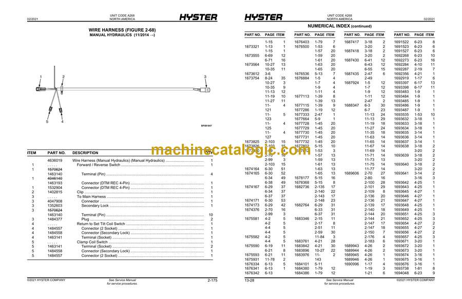• WIRE HARNESS MAIN WITH MANUAL HYDRAULICS – SHEET 2 OF 3 (10/2013 ↔ 11/2014)