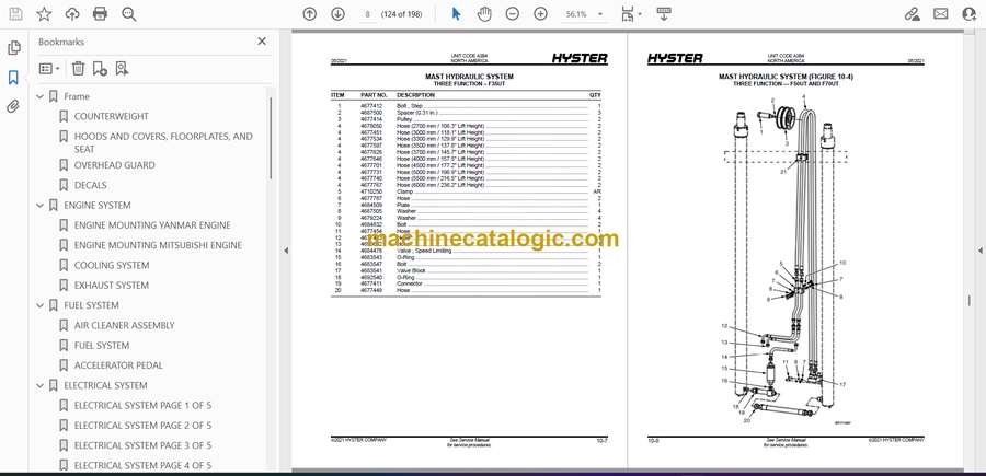 • MAST HYDRAULIC SYSTEM FOUR FUNCTION – F50UT AND F70UT
