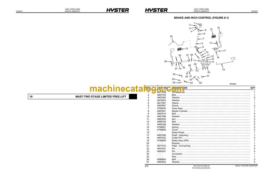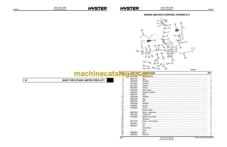 Hyster F35UT, F50UT, F70UT (A3B4) Forklift Parts Manual Index: