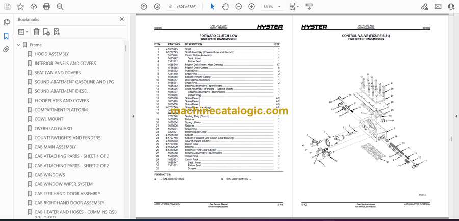 AUXILIARY TUBE EXTENSIONS THREE STAGE FULL FREE LIFT WITH SIDE SHIFT FORK POSITIONER CARRIAGE – MANUAL HYDRAULICS WITH QUICK DISCONNECT FITTINGS (S/N A614V02262H →)