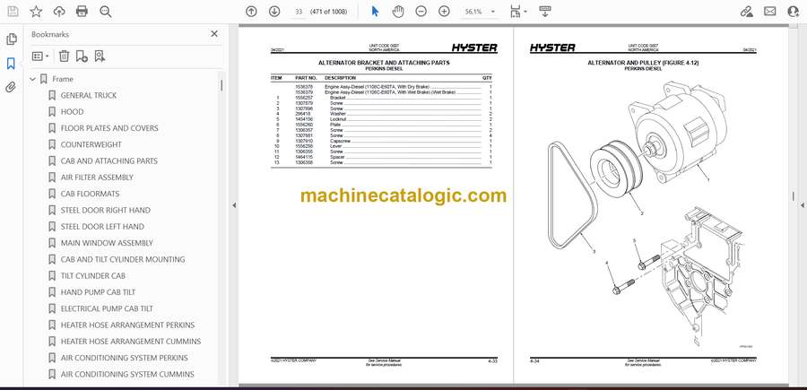 Hyster H170, H280HD (G007) Challenger Forklift Parts Manual
