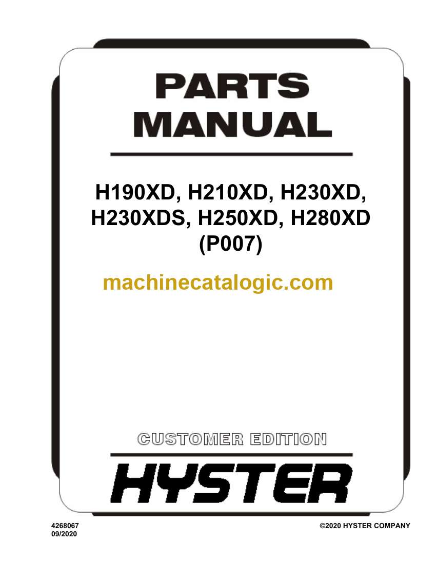 Hyster H190XD, H210XD, H230XD, H230XDS, H250XD, H280XD (P007) Forklift Parts Manual