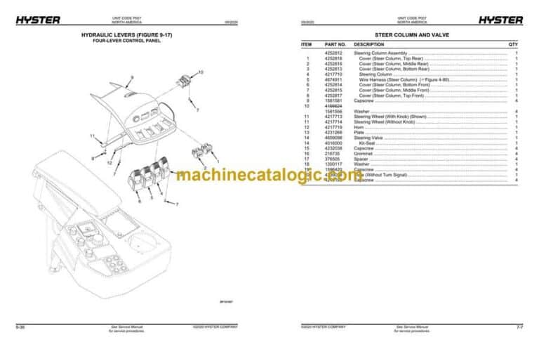 Hyster H190XD, H210XD, H230XD, H230XDS, H250XD, H280XD (P007) Forklift Parts Manual Index: