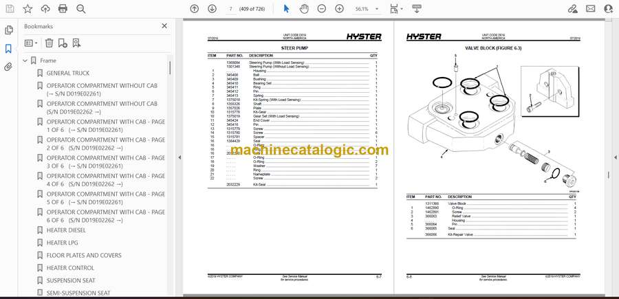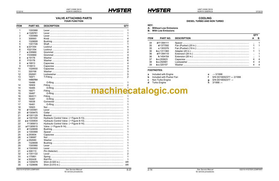 Hyster H300-360XL, H33-360XL-EC (D019) Challenger Forklift Parts Manual Index: