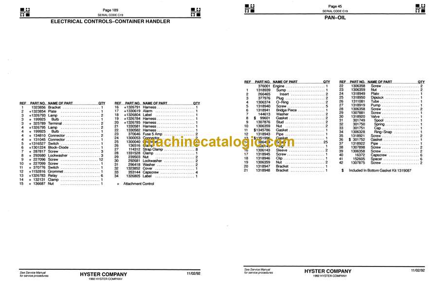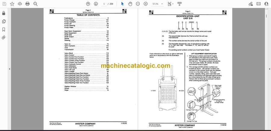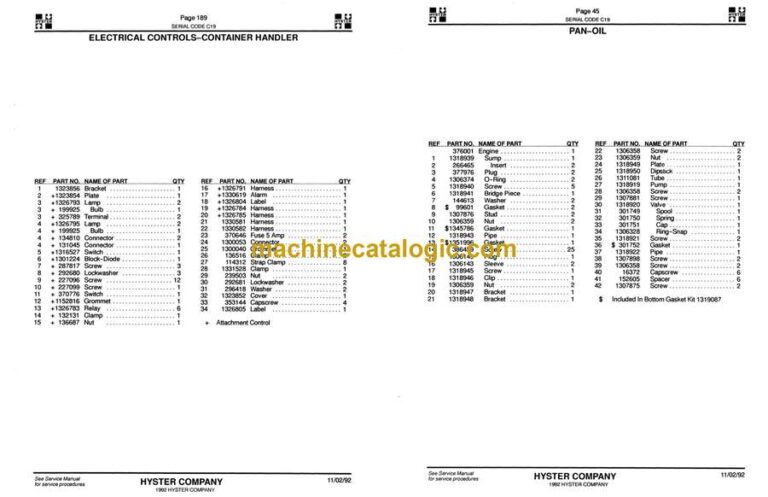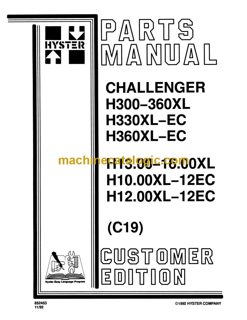 Hyster H300, H360XL, H330XL-EC, H360XL-EC, H13.00, H16.00XL, H10.00XL,-12EC, H12.00XL-12EC (C19) Challenger Forklift Parts Manual