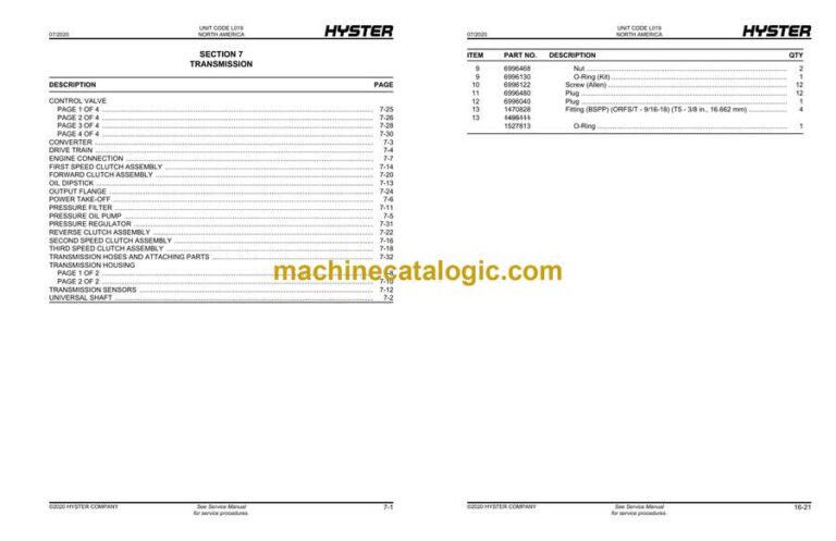 Model: H300HD2, H330HD2, H360HD2, H360HD2-EC, H210-48HD2, H230-48HD2, H250-48HD2 (L019) Forklift