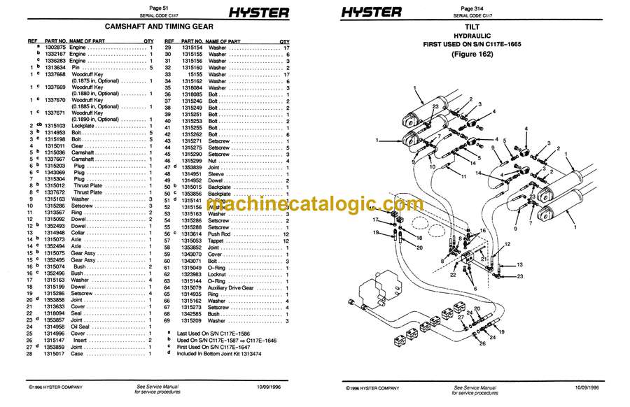 Hyster H36.00-40.00-44.00C, H48.00CH (H800-880,970C-1050CH) (C117) Forklift Parts Manual