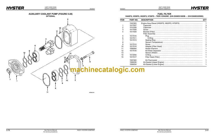 • CORROSION RESISTOR H440FS, H550FS, H620FS, H700FS – TIER II ENGINE (S/N E008E01985B ↔ S/N E008E02099D)