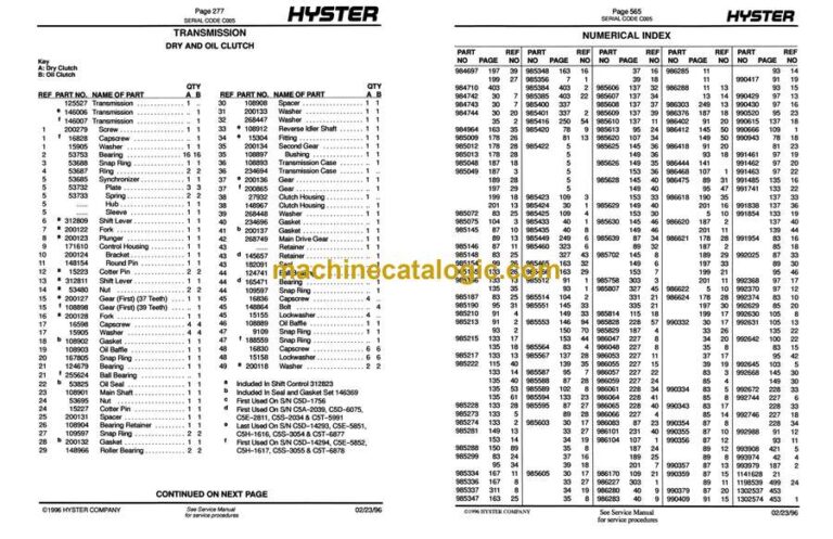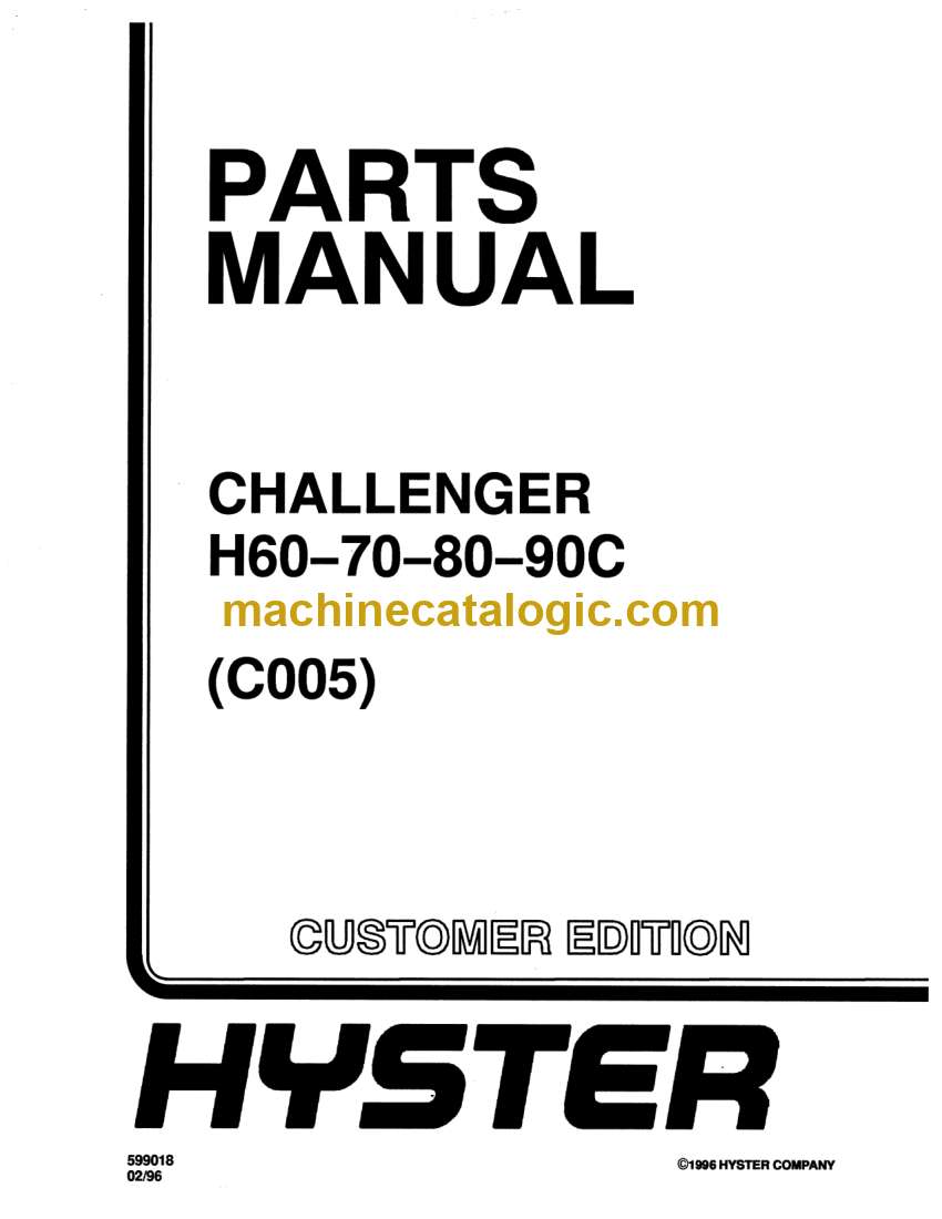 Hyster H60, H70, H80, H90C Challenger (C005) Forklift Parts Manual
