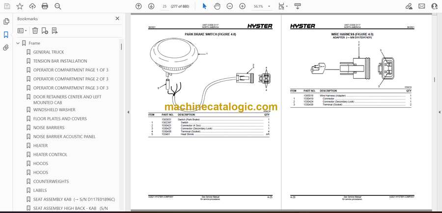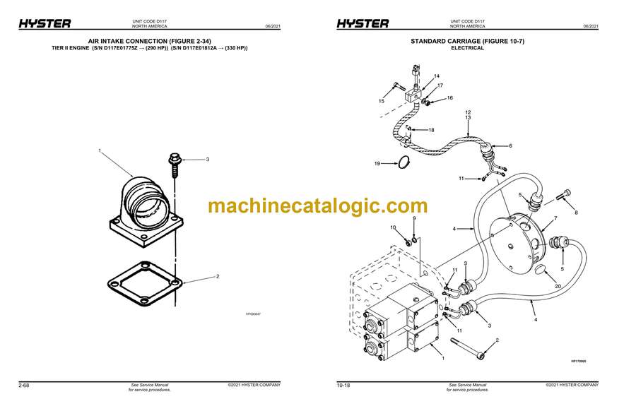 Hyster H800, H970E, H1050EH (D117) Forklift Parts Manual Index: