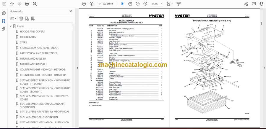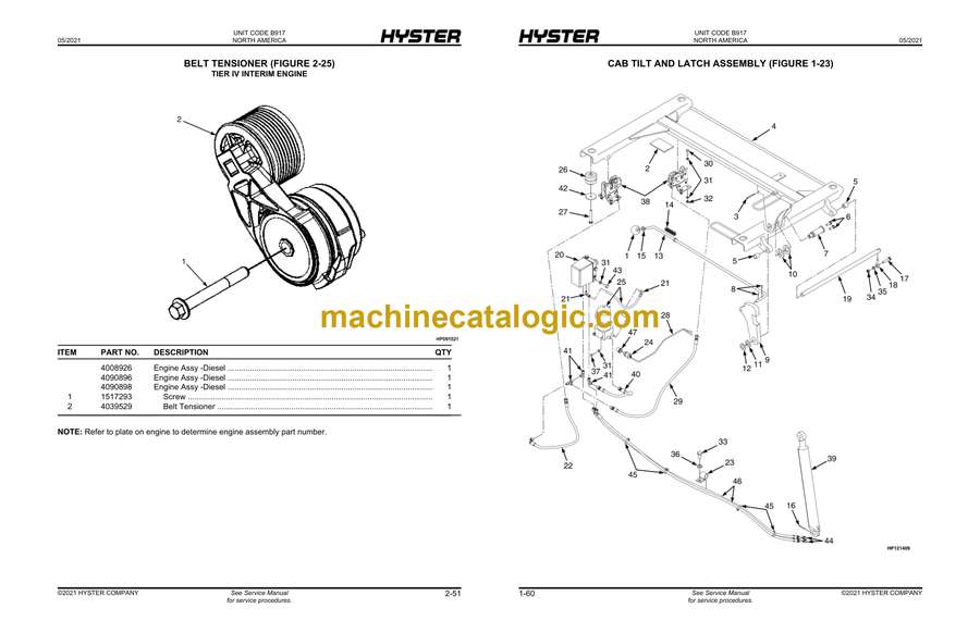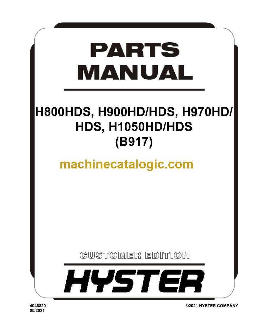 Model: H800HDS, H900HD, H900HDS, H970HD, H970HDS, H1050HD, H1050HDS (B917) Forklift