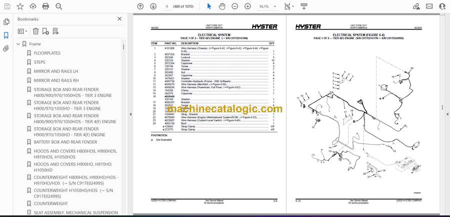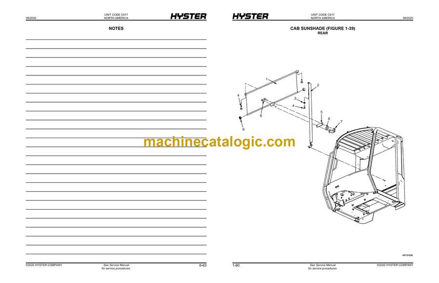 Model: H800HDS, H900HDS, H970HDS, H1050HDS, H900HD, H970HD, H1050HD (C917) Forklift