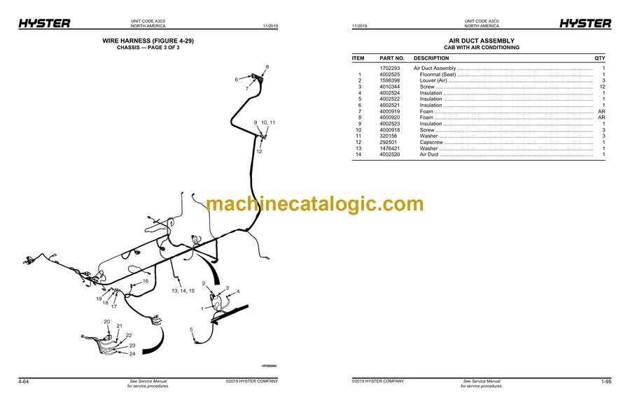 Model: H300, H360XL, H330XL-EC, H360XL-EC, H13.00, H16.00XL, H10.00XL,-12EC, H12.00XL-12EC (C19) Challenger Forklift