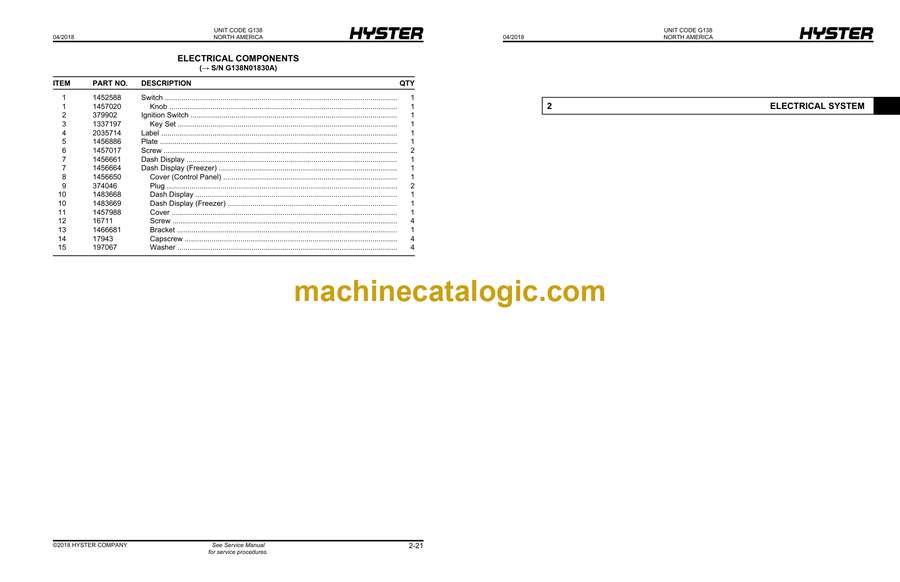 Hyster N30XMDR3, N45XMR3 (G138) Forklift Parts Manual Index: