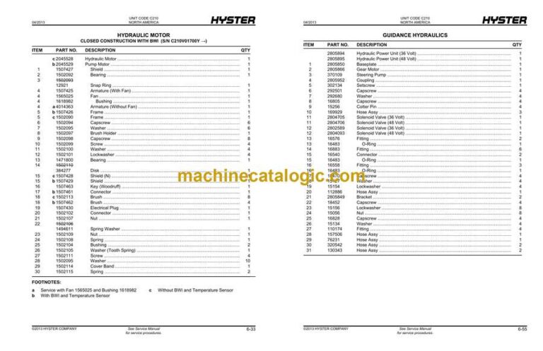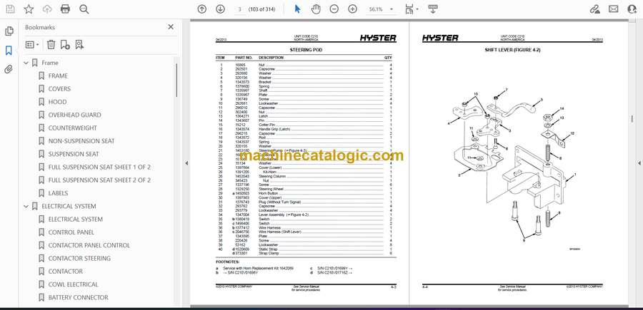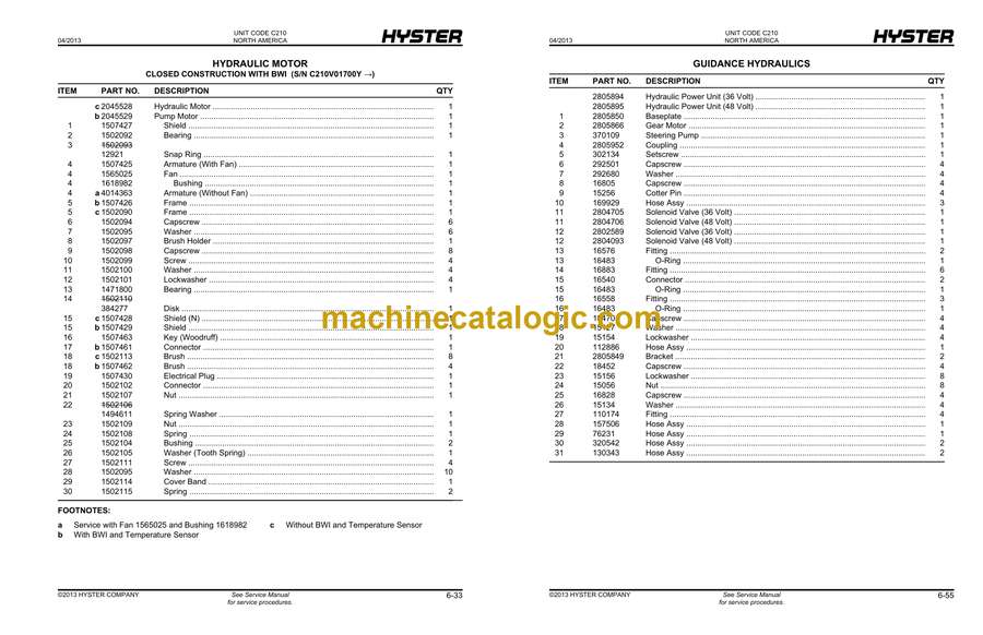 Hyster N30XMH2 (C210) Forklift Parts Manual